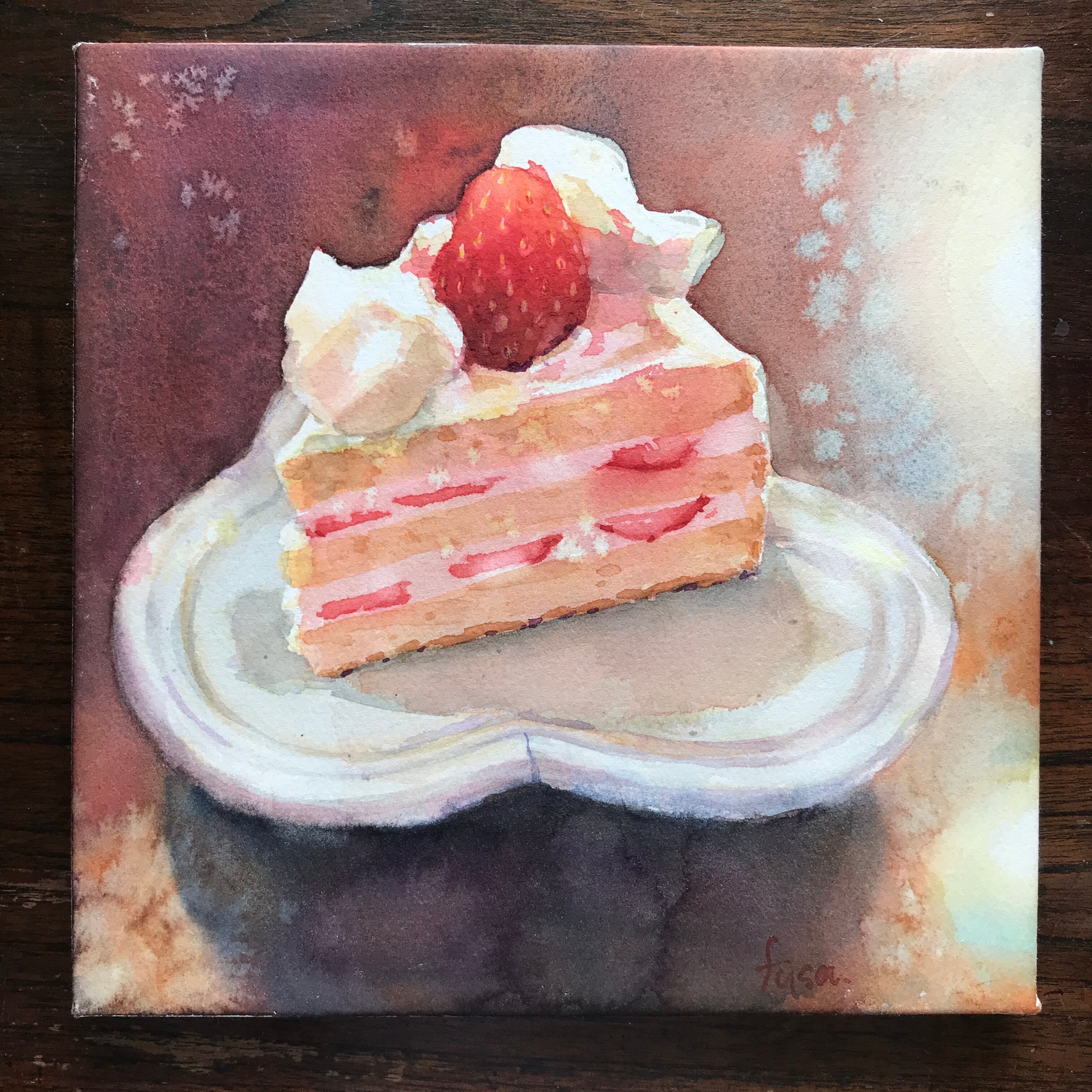 喫茶店の優しい燈りに照らされた、ショートケーキです。